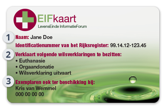 De kaart vermeldt over welke wilsverklaringen u beschikt. De LEIFkaart vervangt de wilsverklaringen niet, integendeel: ze refereert er net naar.
